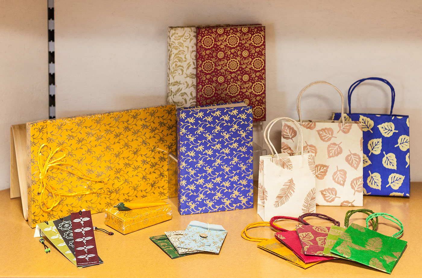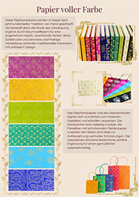 Für weitere frühlingshafte Farbtupfer sorgt die abwechslungsreiche Papeterie. Diese Papierprodukte werden in Nepal nach jahrhundertealter Tradition von Hand geschöpft. Als Rohstoff dient die Rinde des Loktabaums, ergänzt durch Baumwollfasern für eine angenehme Haptik. Leuchtende Farben, feine Golddrucke und eine faire, nachhaltige Herstellung verbinden traditionelles Handwerk mit zeitlosem Design.